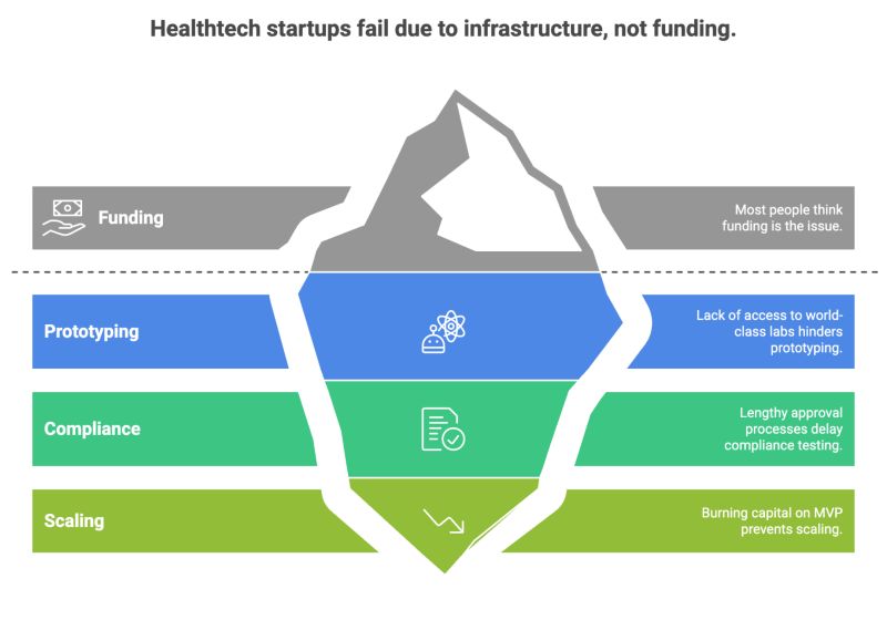 In startups, a most decisive factor which determines whether their idea lives or not is thought to be funding. When it comes to healthtech, a different pattern emerges. Most startups do not fail because of funding, they fail because they lack access to the infrastructure to translate the vision they had into a working product. Infrastructure is an invisible foundation on which every innovation stands. When it is weak, even the best ideas collapse.